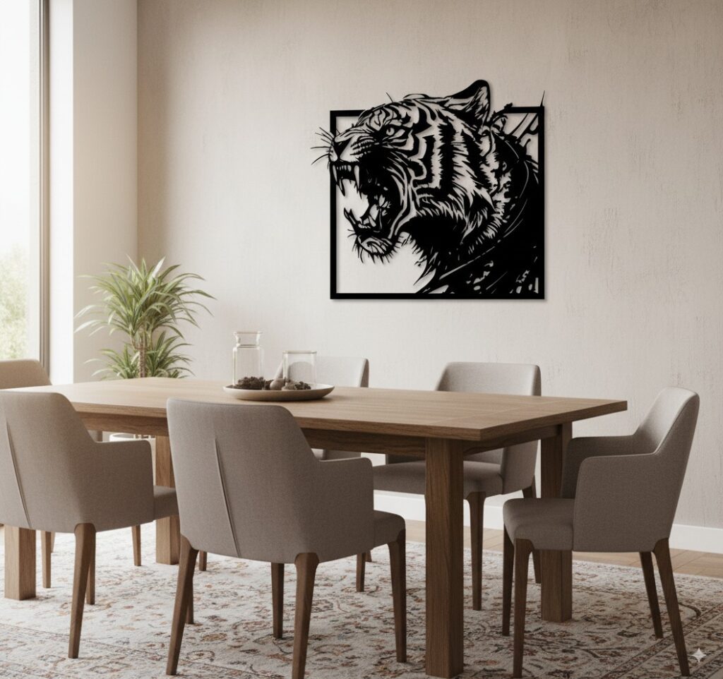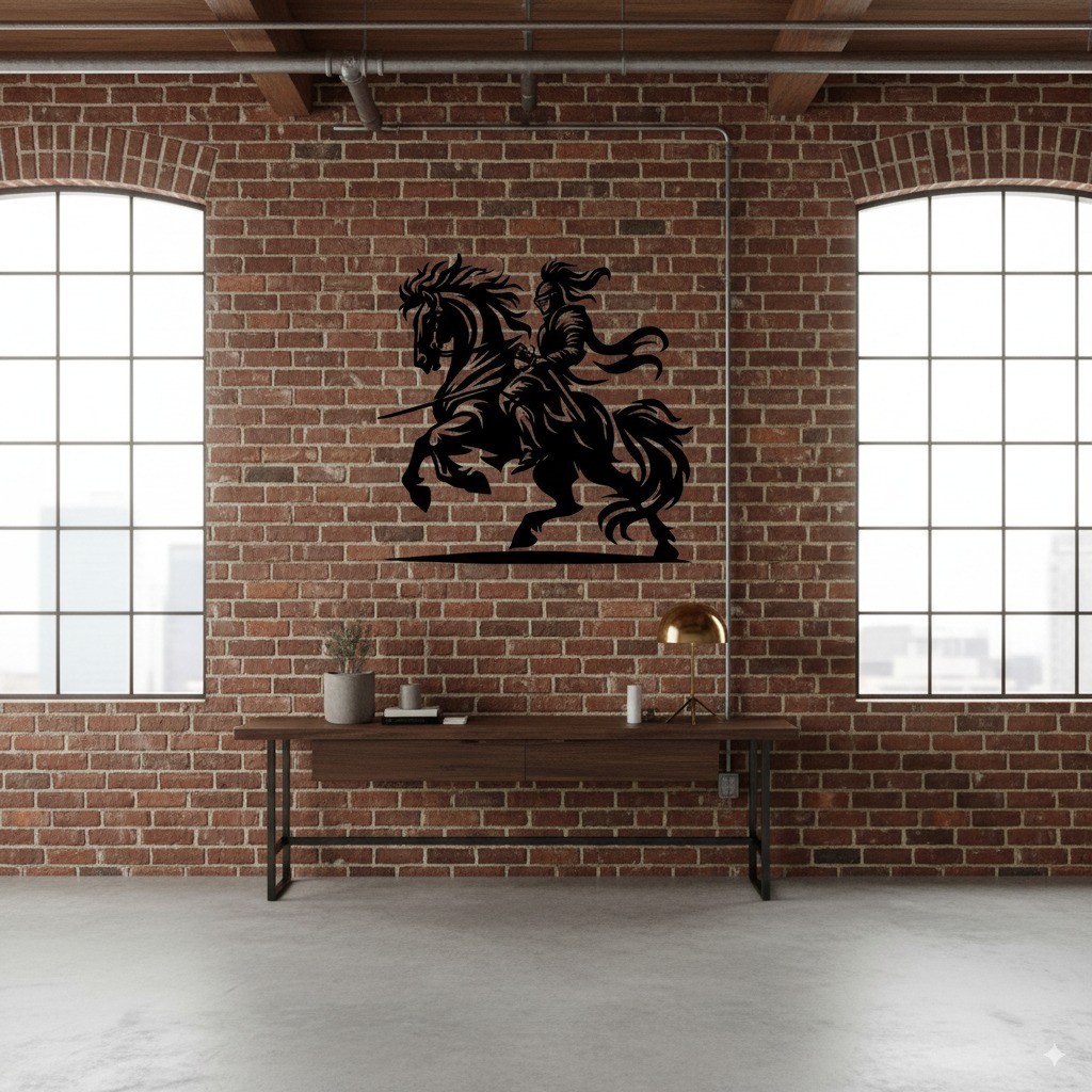 Su acabado moderno y resistente lo convierte en una pieza única de arte metálico para pared, ideal para darle un toque sofisticado, épico y lleno de carácter a salas, oficinas, estudios o cualquier rincón especial.