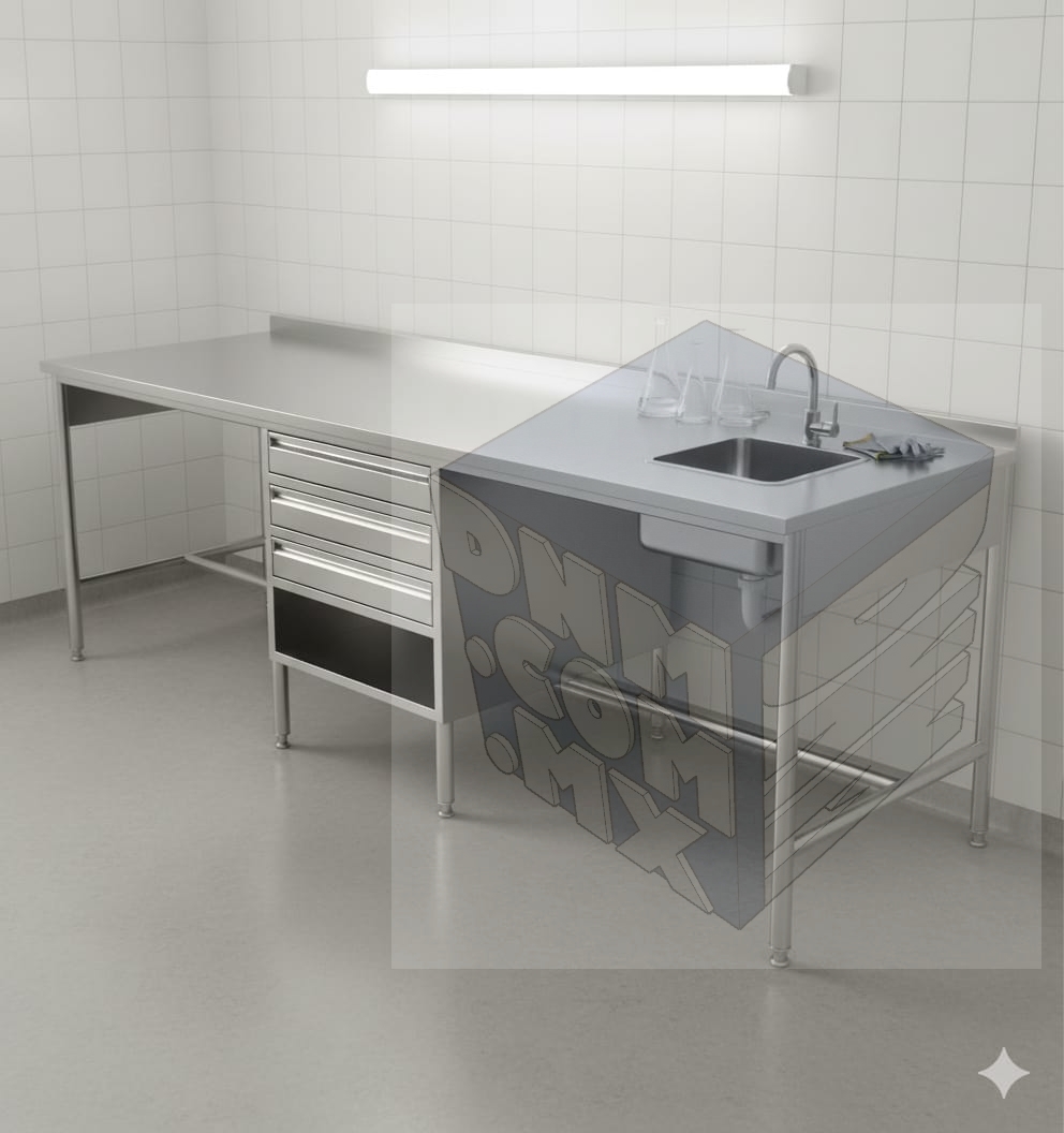 MESA ALTA DE (150 ó 180 ó 210cm) CON ESCUDILLA DERECHA O IZQUIERDA Y CAJONERA CENTRAL.